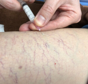 - A. You may feel a slight prick during the injection, but the needle used for sclerotherapy is even thinner than those used for vaccine injections. Among over 3,000 patients treated so far, only two found the injection pain intolerable.